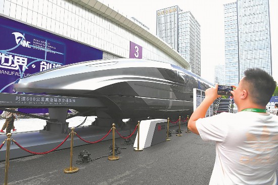 9月20日,市民拍攝展出的時速600公裡高速磁浮交通系統。