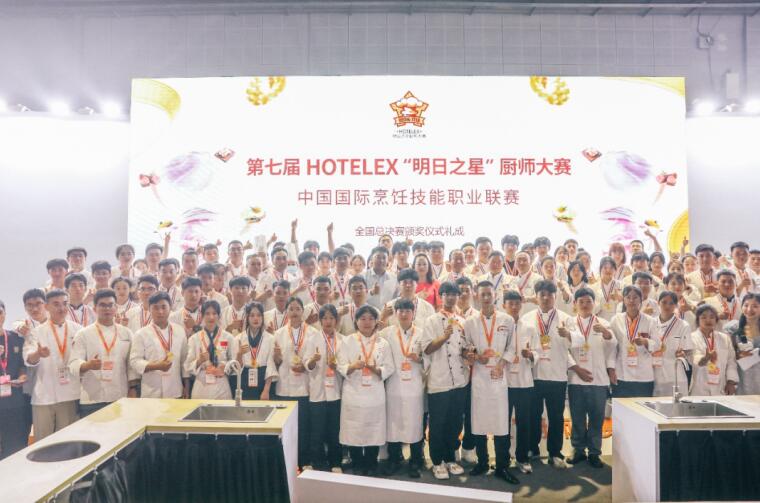 第七届HOTELEX“明日之星”厨师大赛中国国际烹饪技能职业联赛全国总决赛 现场合影。中国东方教育供图