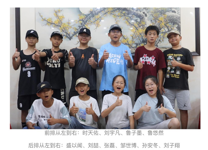 “我长大以后想回到乡村当老师,帮助和我一样的农村孩子。”鲁子墨,她是团队中仅有的两名“女将”之一。别看她是个女孩子,个头不高却有着一股韧劲,不怕苦不服输,眼神里始终透露着一份自信,她是全场唯一一位被外教现场表扬的队员。能被表扬动作标准且与外教毫无障碍地交流,她感到很骄傲。